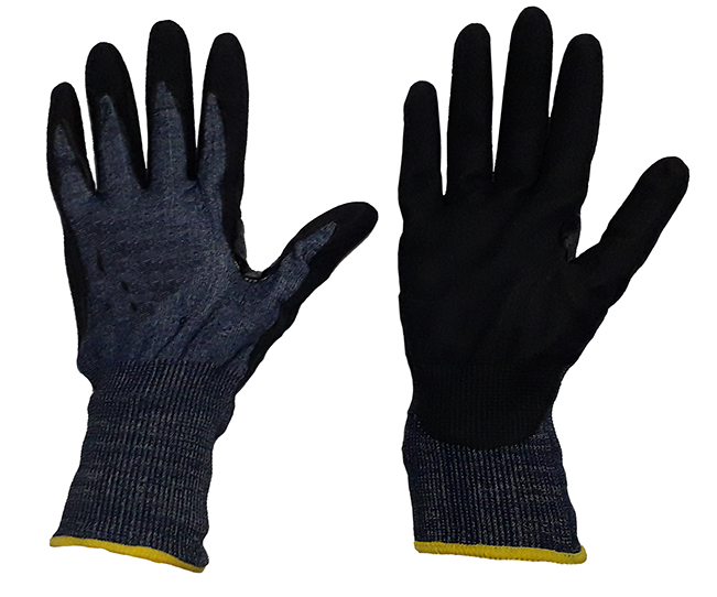 Guanto antitaglio spalmato in microfoam nitrile nero con rinforzo tra pollice e indice