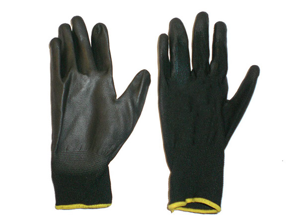 Guanto in poliestere nero, spalmato su palmo e dita con poliuretano nero.