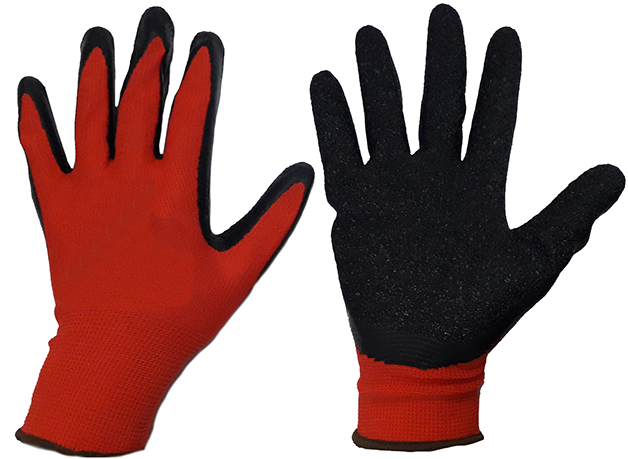 Guanto in nylon, spalmato su palmo e dita in lattice, disponibile in differenti combinazioni di colori.