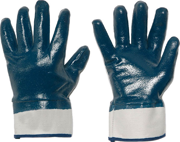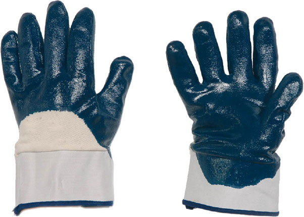 Guanto in NBR blu, su base di jersey, completamente ricoperto, con manichetta da 7 cm.