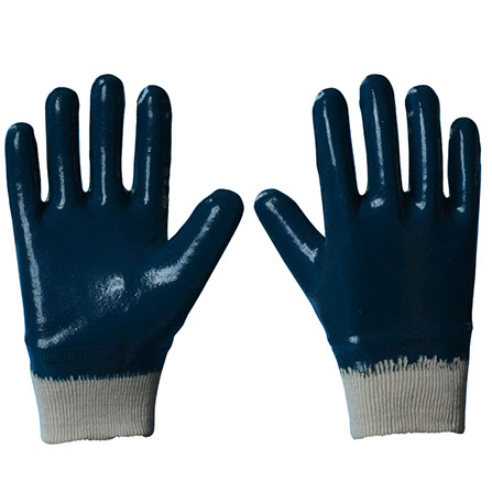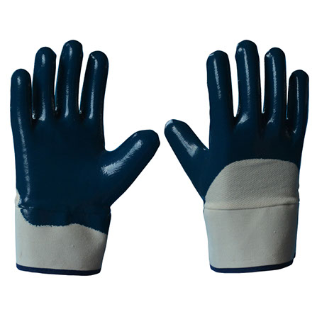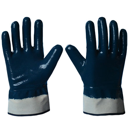 Guanto NBR blu, completamente ricoperto, con manichetta di sicurezza