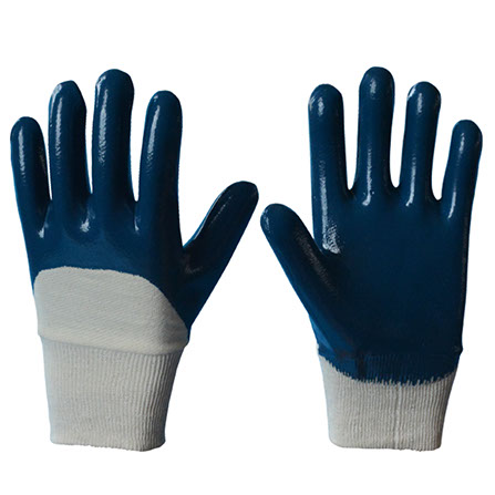 Guanto in NBR blu, rivestito a 3/4, con manichetta di sicurezza