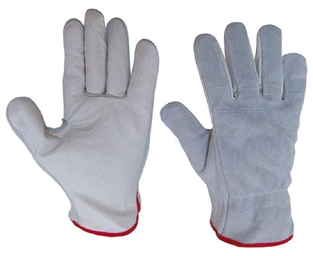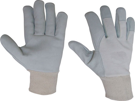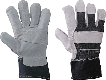 Guanto in pelle crosta bovina, manichetta e dorso in cotone, palmo rinforzato
