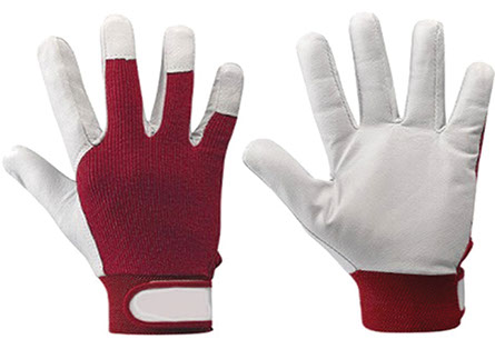 Guanto in pelle fiore capretto, dorso in cotone, chiusura con velcro