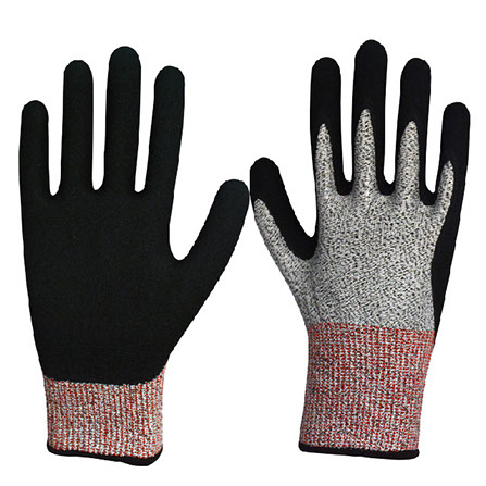 Guanto in filato antitaglio 13G Livello C, D, E palmo rivestito in lattice sabbiato