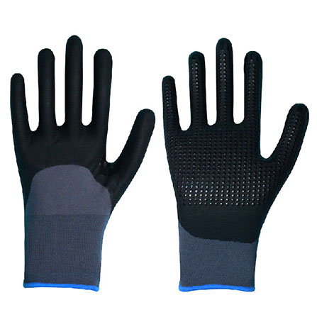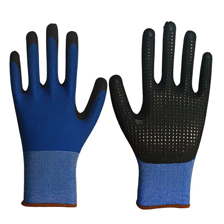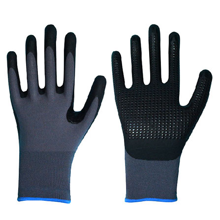 Guanto in nylon 18G ricoperto a 3/4 in foam nitrile, palmo puntinato