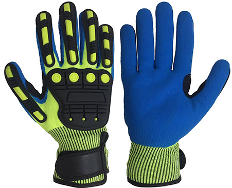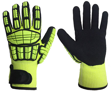 Guanto antishock, 13G, palmo rinforzato in foam nitrile, rinforzo sul pollice, chiusura con velcro